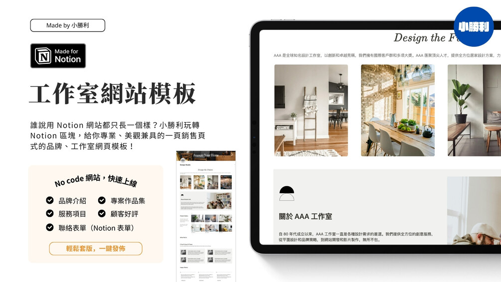 一頁式網站 Notion 模板專為品牌、工作室和小企業量身打造,