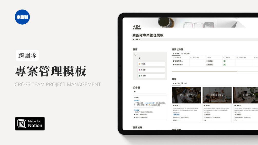 這個免費的 Notion 模板給你一個基本的專案管理框架,讓你可以依照需求擴展成你所需的管理「系統」。